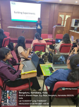 This session introduced participants to various eye trackers through hands-on experience. They were divided into two groups, attending parallel sessions at different venues. In the Assembly Hall, Mr. Parag demonstrated the TOBII eye trackers, specifically Tobii Glasses and the Tobii Screen-Based Eye Tracker, explaining their applications in neuromarketing and behavioral neuroscience. Meanwhile, at the NeuroCognition Laboratory, participants were introduced to the EyeLink 1000 Plus from SR Research. These sessions provided real-time exposure to hardware setup, experiment execution, and eye-tracking data collection, enhancing participants' practical understanding of eye-tracking technology.